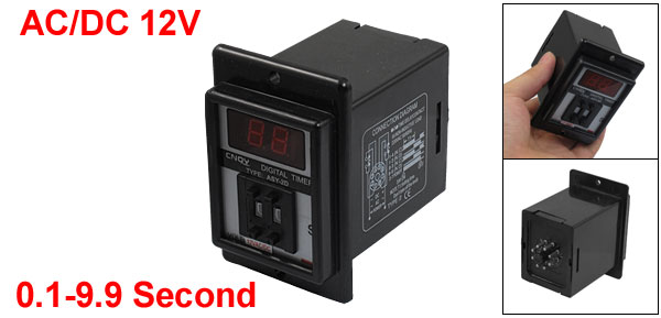 Product Name Digital Time Relay Type ASY-2D Rated Voltage AC/DC 12V Frequency 50/60 Hz Contact AC 220V 5A Non-inductive Load Time Range 0.1-9.9 Second Mount Size (Approx.) 49 x 68 x 61mm/ 1.9" x 2.7" x 2.4" (L*W*H) Mount Hole Diameter 4mm/ 0.16" Total Size 57 x 90 x 86mm/2.2" x 3.5" x 3.4"(L*W*H) Color Black Net Weight 130g Package Content 1 x Digital Time Relay - Reviews