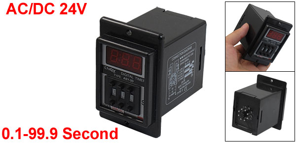 Product Name Digital Time Relay Type ASY-3D Rated Voltage AC/DC 24V Frequency 50/60 Hz Contact AC 220V 5A Non-inductive Load Time Range 0.1-99.9 Second Mount Size (Approx.) 49 x 68 x 61mm/ 1.9" x 2.7" x 2.4" (L*W*H) Mount Hole Diameter 4mm/ 0.16" Total Size 57 x 90 x 86mm/2.2" x 3.5" x 3.4"(L*W*H) Color Black Net Weight 134g Package Content 1 x Digital Time Relay - Reviews