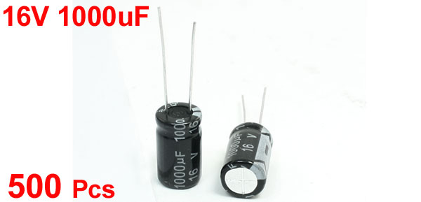 Capacitance 1000uF(±20%) Body Size 17mm x 10mm/ 0.67" x 0.4"(H*D) Lead Space 5mm Lead Length 20mm, 26mm Main Color Black Total Weight 647g Package Content 500Pcs(±2%) x Electrolytic Capacitors - Reviews