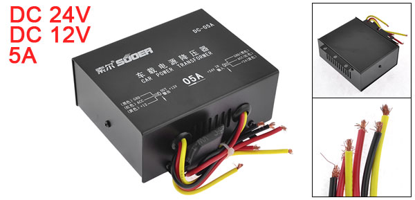 Product Name Car Power Supply Transformer Input DC 24V Output DC 12V Current 5A Total Size (Approx.) 11 x 8.9 x 4.6cm/ 4.3" x 3.5" x 1.8" (L*W*H) Cable Length 12cm/ 4.7" Mount Hole Diameter 5mm/ 0.2" Material Metal, Electric Components Color Black Net Weight 515g Package Content 1 x Car Power Supply Transformer - Reviews