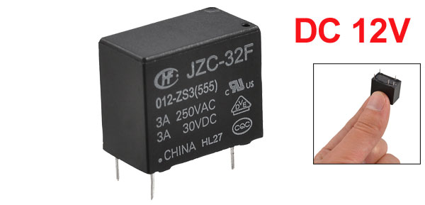 Product Name Relay Material Plastic, Metal Color Black Model JZC-32F 012-ZS3 Number of Pins 5 Coil Voltage DC 12V Rated Load 3A 250VAC / 3A 30VDC Size (Approx.) 1.8 x 1 x 1.5cm/0.71" x 0.39" x 0.59" (L*W*T)