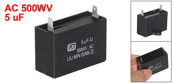 Black Cover 2 Terminal Pin 500WV AC 5 uF Motor Run Ceiling Fan Capacitor