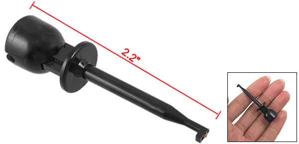 DetailsBlack Electrical Testing Lead Wire Hook Clip Connector  Product Name Electrical Testing Hooks Application Electric Testing Work Size 5.5 x 1 x 1 cm / 2.2" x 0.4" x 0.4" (L*W*Dia.) End Hole Dia. ~0.3cm / 0.1" Color Black Material Metal & Plastic Weight 4g Package 1 x Electrical Testing Hook