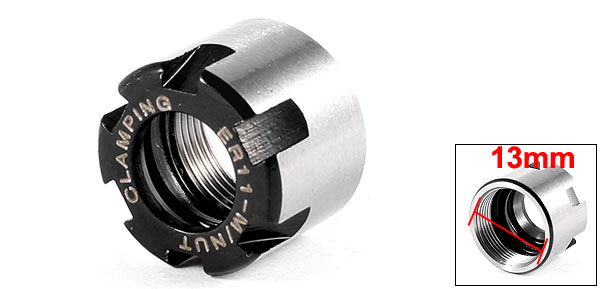 Product Name Collet Nuts Model ER11 Hole Diameter 9mm/ 0.4" Thread Diameter 13mm/ 0.5" Overall Size(Approx.) 15 x 12mm/ 0.6" x 0.5" (D*L) Material Metal Color Black Net Weight 9g Package 1 x Collet Nuts - Reviews