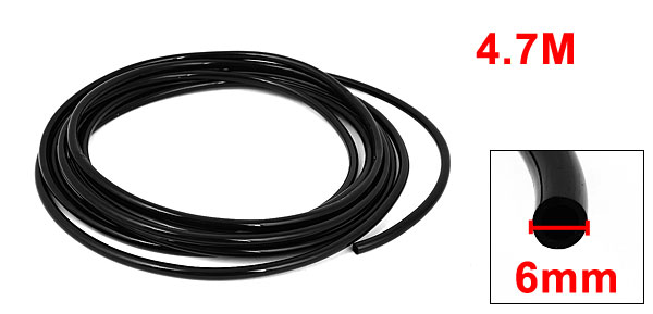 Black Flexible 6mm Diameter Pneumatic Air PU Hose Pipe Tube 4.7Meters Length