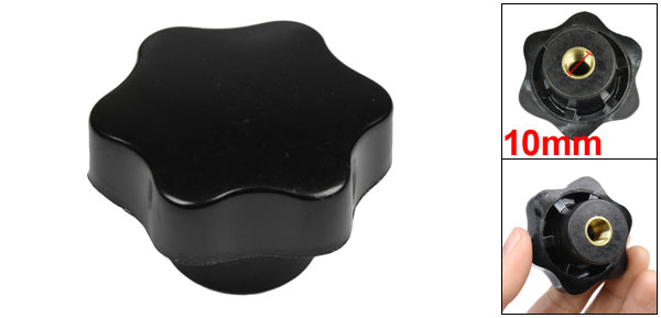 Product Name Star Knob Type Screw On Head Diameter 50mm / 1.97" Thread Diameter 10mm / 0.39" Total Height 33mm / 1.3" Material Metal, Plastic Color Gold Tone, Black Weight 48g Package Content 1 x Star Knob - Reviews