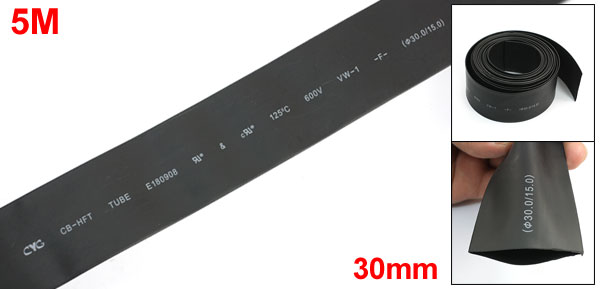 Black Heat Shrinkable Tubing Shrink Tube 15mm 30mm 5 Meters 600V 125C