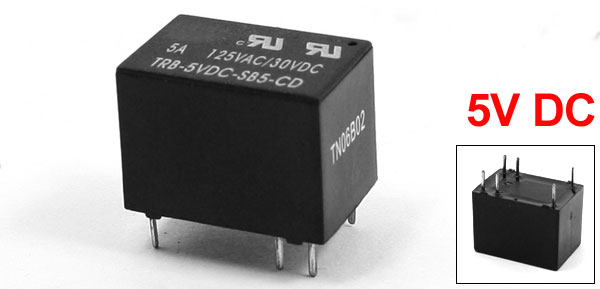 Product Name Relay Model TRB-5VDC-SB5-CD Coil Voltage 5VDC Contact Capacity 5A 125VAC/30VDC Contact Type SPDT Terminal Number 6 Size (Approx.) 15 x 10 x 11mm / 0.59" x 0.39" x 0.43" (L * W * T) Color Black Weight 5g Package Content 1 x Relay  - Reviews