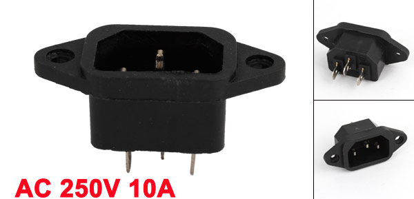 Black IEC320 C14 3Pins Male Plug Power Inlet Socket AC 250V 10A