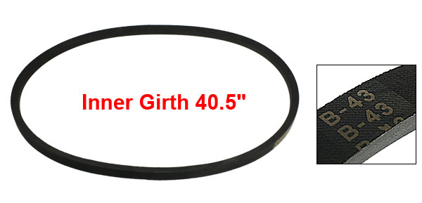 DetailsBlack Inner Girth 1030mm 40.5" Rubber B Type Wedge Rope Vee Belt  Product Name V Belt Type B-43 Top Width 16mm / 5/8" Inner Girth 1030mm / 40.5" Height 11mm / 0.433" Main Material Rubber Color Black Weight 214g Package Content 1 x V Belt