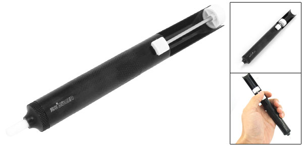 Product Name Desoldering Pump Material Metal, Plastic Color Black, Silver Tone Size 19.2 x 2m/7.6'' x 0.79''(L*D) Weight 45g Package Content 1 x Desoldering Pump - Reviews