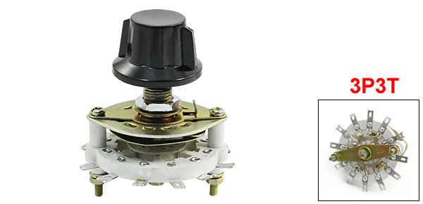 Black Knob 3P3T 3 Pole 3 Position Band Channel Rotary Switch Selector