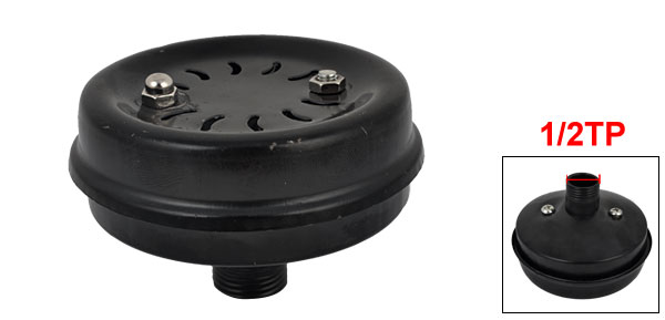 DetailsBlack Metal 1/2PT Male Threaded Reducing Noise Compressor Silencer Muffler  Product Name Compressor Silencer Use for Air Compressor Admitting Port Shell Material Metal Color Black Size (Approx. ) 8.5 x 5.6cm/ 3.3" x 2.2" (D*T) Thread Diameter 20mm / 1/2 PT Weight 86g Package Content 1 x Compressor Silencer