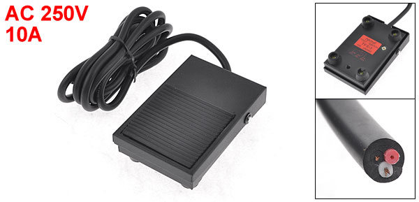 Product Name Foot Pedal Switch Model TFS-1 Action Type Momentary Contact Type SPDT (NO NC) Material Metal, Plastic Rated Voltage / Current AC 250V 10A Pedal Size (Approx.) 100 x 70 x 30mm/ 3.94" x 2.76" x 1.2" (L*W*Max.H) Color Black Cable Length 175cm / 5.74 Ft (Built in 3-Wire) Weight 264g Package Content 1 x Foot Pedal Switch - Reviews
