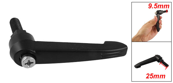 Product Name Adjustable Handle Material Metal Color Black Thread Diameter 9.5mm/0.37" Thread Length 25mm/0.98" Lever Length 80mm/3.15" Overall Size 62 x 90mm/2.4" x 3.5"(L*W) Weight 112g Package Content 1 x Machinery Adjustable Handle - Reviews