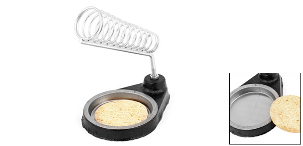 Black Metal Base Spring Stand Holder Station for Soldering Iron w Round Sponge