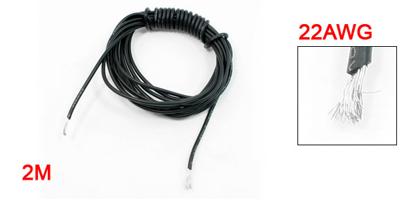 Black Model 22AWG Outer Dia 2.26mm Silicone Resin Cable 200cm