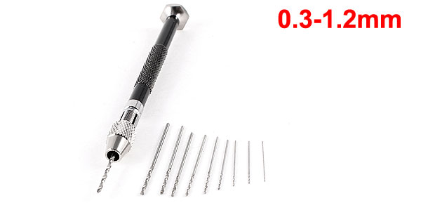 Product Name Single Mouth Pin Vise Hand Drill Bit Chuck Material HSS,Metal Fit Drill Bit Dia 0.3-1.2mm/ 0.018"-0.047" Color Black, Silver Tone Size 11 x 85mm/ 0.43" x 3.3" (D*L) Weight 25g Package 1 x Single Mouth Pin Vise Hand Drill Bit Chuck