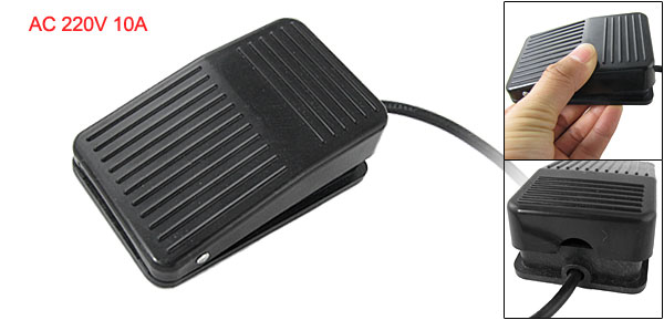 Product Name Foot Switch Action Type Momentary Contact Type SPDT (NO NC) Material Plastic Voltage AC 220V 10A Size 10 x 6 x 3.5 cm / 3.9" x 2.4" x 1.4" (L x W x T) Color Black Weight 80g Package Content 1 x Foot Switch - Reviews