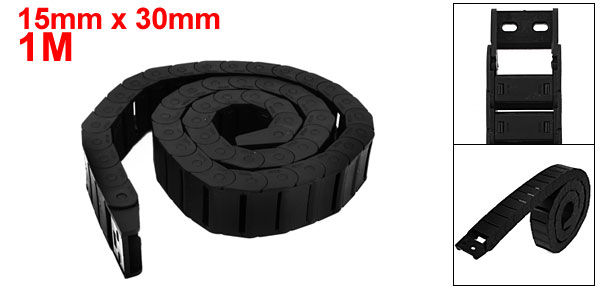 Black Plastic 15mm x 30mm Flexible Semi Closed Cable Drag Chain 1 M Long
