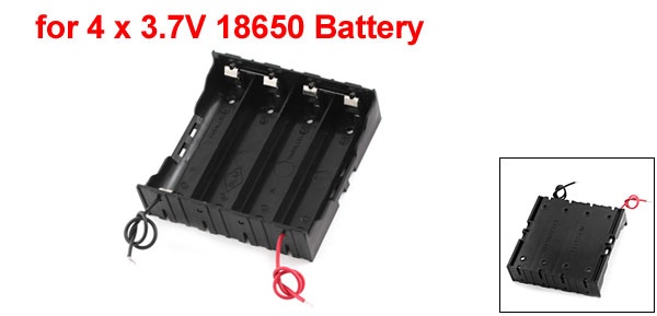 Main Color Black Fit for 4 x 3.7V 18650 Battery (Not Included The Battery) Net Weight 29g Country of Manufacture CHINA Package Content 1 x Battery Holder Material Plastic, Metal Total Size 79 x 78 x 21mm/3.1" x 3" x 0.87"(L*W*H) Wire Length 11cm/4.3" Battery Connect Type In Series - Reviews