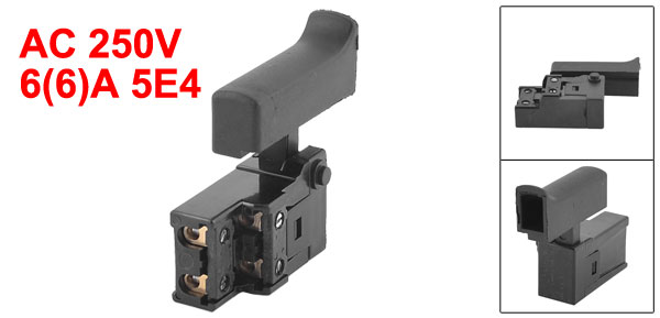 Black Plastic AC 250V 6A Electric Tool DPST Momentary Trigger Switch
