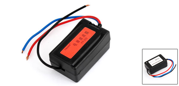 Black Plastic Body Wired Power Supply Noise Filter for Car Auto
