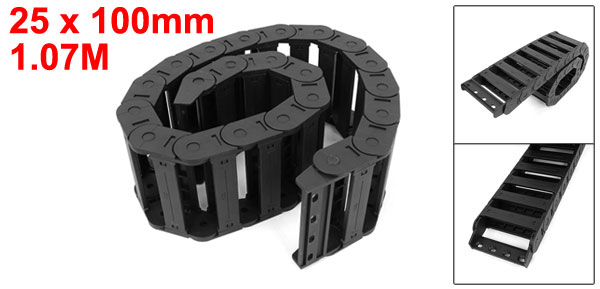Product Name Cable Drag Chain Material Plastic Internal Size 25 x 100 x 36mm/ 0.98" x 3.9" x 1.4"(L*W*H) External Size 113x 36mm/ 4.4" x 1.4"(W*H) Total Length 107cm/ 3.5Ft Color Black Net Weight 1183g Package Content 1 x Cable Drag Chain - Reviews