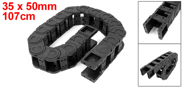 Product Name Cable Drag Chain Material Plastic Internal Size 35 x 50 x 52mm/ 1.4" x 2" x 2"(L*W*H) External Size 70 x 55mm/2.8" x 2.2"(W*H) Total Length 107cm/ 3.5Ft Color Black Net Weight 1540g Package Content 1 x Cable Drag Chain - Reviews