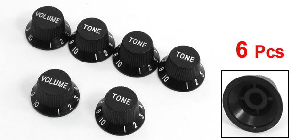 Black Plastic Guitar Voice Control Rotary Volume Knob 0-10dB 6 Pcs