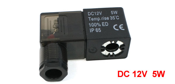 DetailsBlack Plastic Housing Pneumatic Solenoid Valve Coil DC 12V 5W  Product Name Solenoid Valve Coil Material Plastic, Electrical Part Voltage DC 12V 5W Power 50Hz Amp 29mA Temp Rise 35 °C Hex Connector Inner Dia (Approx) 10 mm / 0.4" Total Size (Approx) 5.8 x 4.5 x 2.2 cm / 2.28" x 1.77" x 0.87" (L*W*H) Core Diameter 8.3 mm / 0.33", 9.3 mm /0.37" Color Black Net Weight 60g Package Content 1 x Solenoid Valve Coil