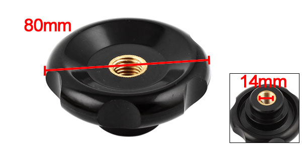Black Plastic Multiple Lobe Knob 80mm x 40mm 14mm Female Thread