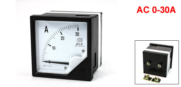 Product Name Analog Ammeter Model 6L2 Accuracy Class 1.5 Measuring Current Range AC 0-30A Front Face Size 80 x 80 x 10.3mm / 3.1'' x 3.1'' x 0.4'' (L*H*Depth) Base Size 75.5 x 75.5mm / 3'' x 3'' (L*H) Overall Depth 79mm / 3.1" Material Plastic Net Weight 221g Package Content 1 x Analog Ammeter
