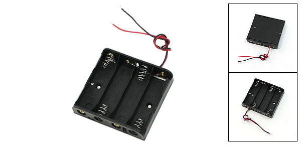 Product Name Battery Case Material Plastic, Metal Body Size 5.8 x 6.3 x 1.5cm/2.3" x 2.5" x 0.6"(L*W*H) Cable Length( Each ) 14cm/5.5" Battery Type 4 x 1.5V AA Color Black Net Weight 14g Package Content 1 x 1.5V Battery Case Holder - Reviews