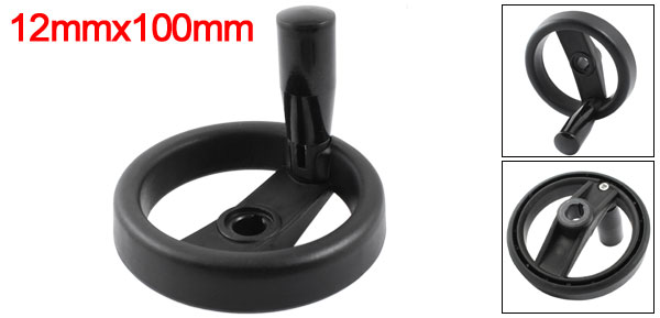Product Name Hand Wheel Center Bore Diameter (Approx.) 12mm / 0.47" Wheel Diameter (Approx.) 100mm / 3.9" Revolving Handle Size 52 x 22mm / 2" x 0.87" (H*D) Wheel Height(Approx.) 22mm / 0.87" Material Plastic, Metal Color Black Weight 165g Package Content 1 x Hand Wheel - Reviews