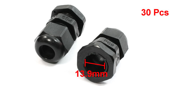 Black Plastic Waterproof Electric Data Cable Glands Joints PG9 30Pcs