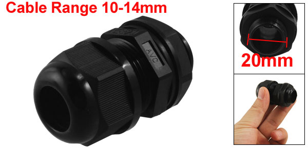Black Plastic Waterproof M20 10-14mm Diameter Cable Gland