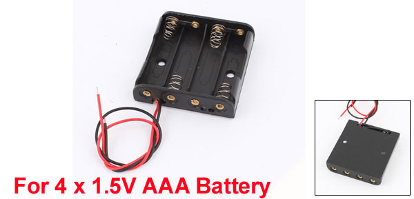 Black Plastic Wires Lead Shell Holder Case Box for 4 x 1.5V AAA Battery
