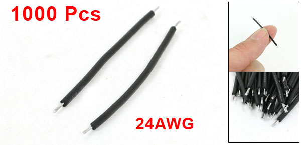 Product Name Motor Wire Type 24AWG Wire Size 0.6 x 40mm / 0.024" x 1.57"(OD*L) Cable Quantity 1000 Pcs Material Plastic, PVC, Tin Plated Copper External Color Black Weight 148g Package 1000(+/-2%) Pcs x Motor Wire - Reviews