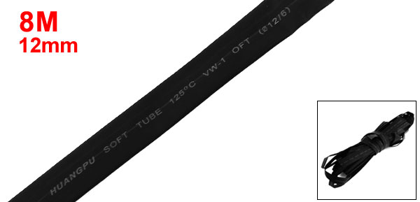 Black Ratio 2:1 125C Polyolefin 12mm Dia Heat Shrink Shrinkable Hose Tube 8M