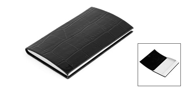 Black Rectangular Faux Leather Magnetic Flap Closure Business Name Card Holder