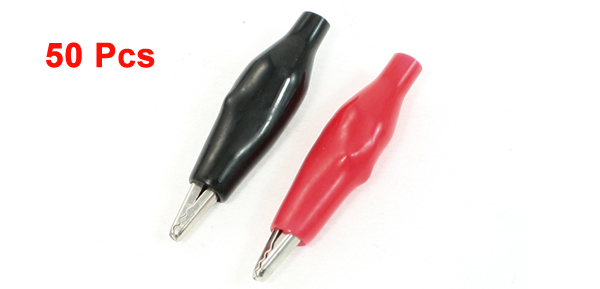 Black Red 30mm Long Metal Alligator Clips Test Leads 50 Pcs