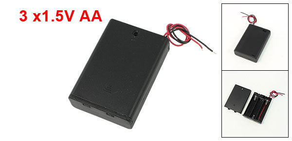 Product Name 1.5 V AABattery Case Battery Type 3 x 1.5 V AA Material Plastic, Electric Part Dimension 7 x 4.5 x 1.5cm/ 2.75" x 1.7" x 0.6"(L*W*H) Cable Length 15cm/ 5.9" Color Black Weight 25g Package Content 1 x 1.5V AABattery Case - Reviews
