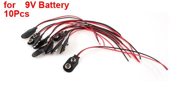 Product Name Battery Connector Fit for 9V Battery (not included here) Size 3 x 1.6 x 0.7 cm / 1.2" x 0.6" x 0.3" (L*W*T) Cable Length 15cm / 5.9" Material Faux Leather, Metal Color Black, Red Net Weight 61g Package Content 10 x 9V Battery Connectors - Reviews