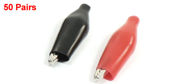 Black Red Plastic Insulation Housing Metal Alligator Clips 50 Pairs