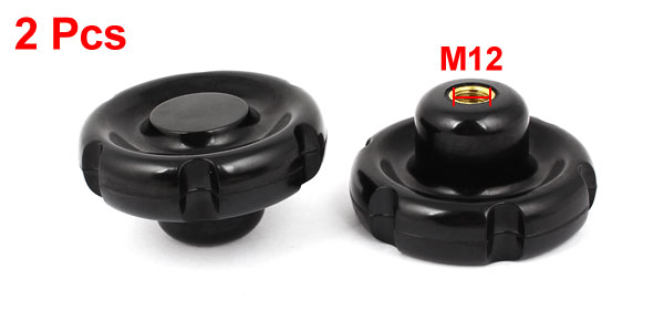 Black Replacement M12 x 75mm Female Thread Knurled Clamping Knob 2 Pcs