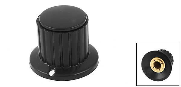 Product Name Potentiometer Control Knob Model KYP25-18-6 Knob Top Diameter 18mm / 0.71" Knob Base Diameter 25mm / 1" Shaft Insert Diameter 6mm / 1/4" Knob Total Height 19mm / 0.75" Material Plastic, Metal Color Black, Brass Tone Weight 8g Package Included 1 x Potentiometer Control Knob - Reviews