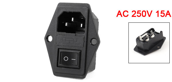 Black Rocker Switch AC 250V 15A IEC320 C14 Power Inlet Socket w Fuse Holder