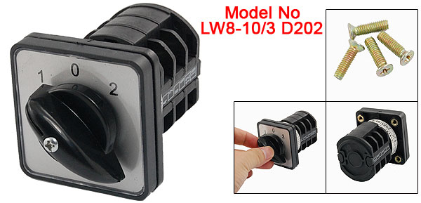 Product Name Universal Switch Model No. LW8-10/3 D202 Voltage AC 440V Ith AC 10A Mounted Hole Dia 3mm/ 0.11" Bottom Size 4.3 x 3.6cm/ 1.7" x 1.4"(L*W) Overall Size 5 x 5 x 7.5cm / 2" x 2" x 2.9" (L*W*H) External Material Plastic Color As Picture Shown Net Weight 94g Package Content 1 x Universal Switch 4 x Installing Screw - Reviews