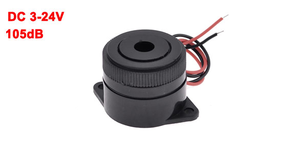 Product Name Electronic Alarm Buzzer Sound-making Type Continuous Sound Rated Voltage DC 3-24V Sound Pressure 105dB Overall Size 4 x 3 x 2.5mm / 1.6" x 1.2" x 1"(L*W*T) Mounting Hole Diameter 3mm / 0.12" Mounting Hole Distance 30mm / 1.2" Wire Length 14cm / 5.4" External Material Plastic Color Black Weight 14g Package Content 1 x Electronic Alarm Buzzer